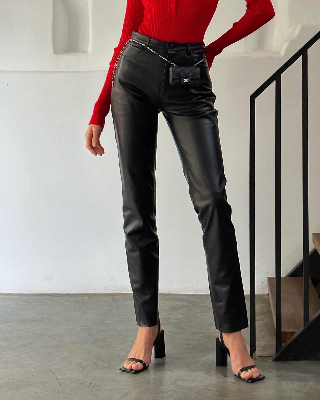 Прямые брюки с высокой посадкой выполнены из натуральной кожи ягнёнка premium-класса и безупречно сидят на фигуре.Арт.: A.BS.P.100