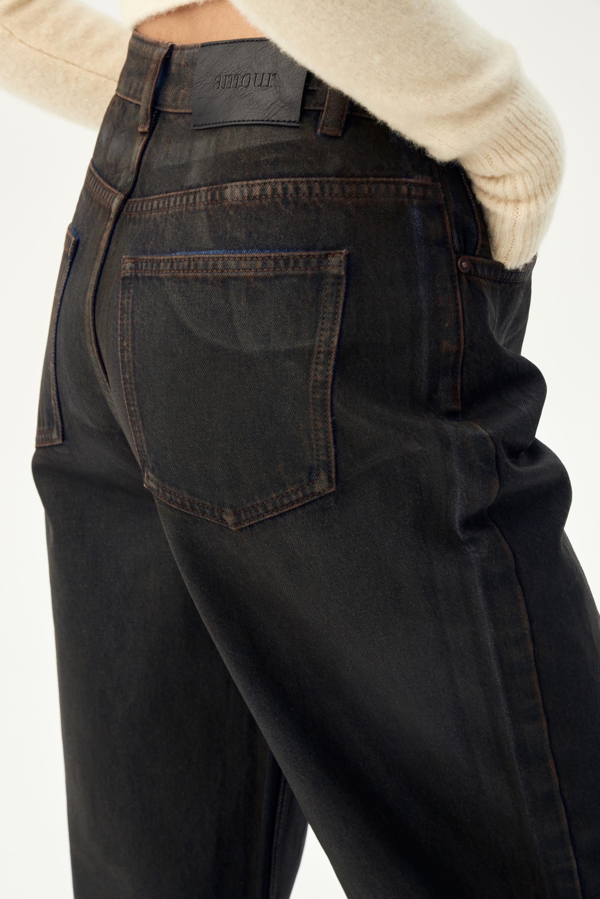 Джинсы relaxed fit из плотного денима с блеском. Матовый глянец и особенная текстура ткани с PU напылением - уникальная особенность модели. Концептуальное цветовое решение и инновационное покрытие делают джинсы must have сезона. Модель представлена в 3 цветах.Арт.: AMW24_J608