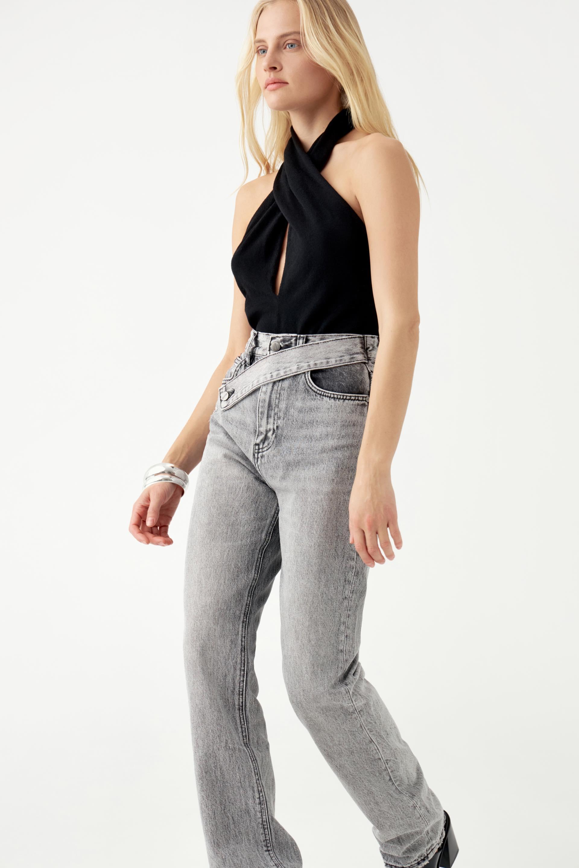 Прямые джинсы с асимметричным поясом