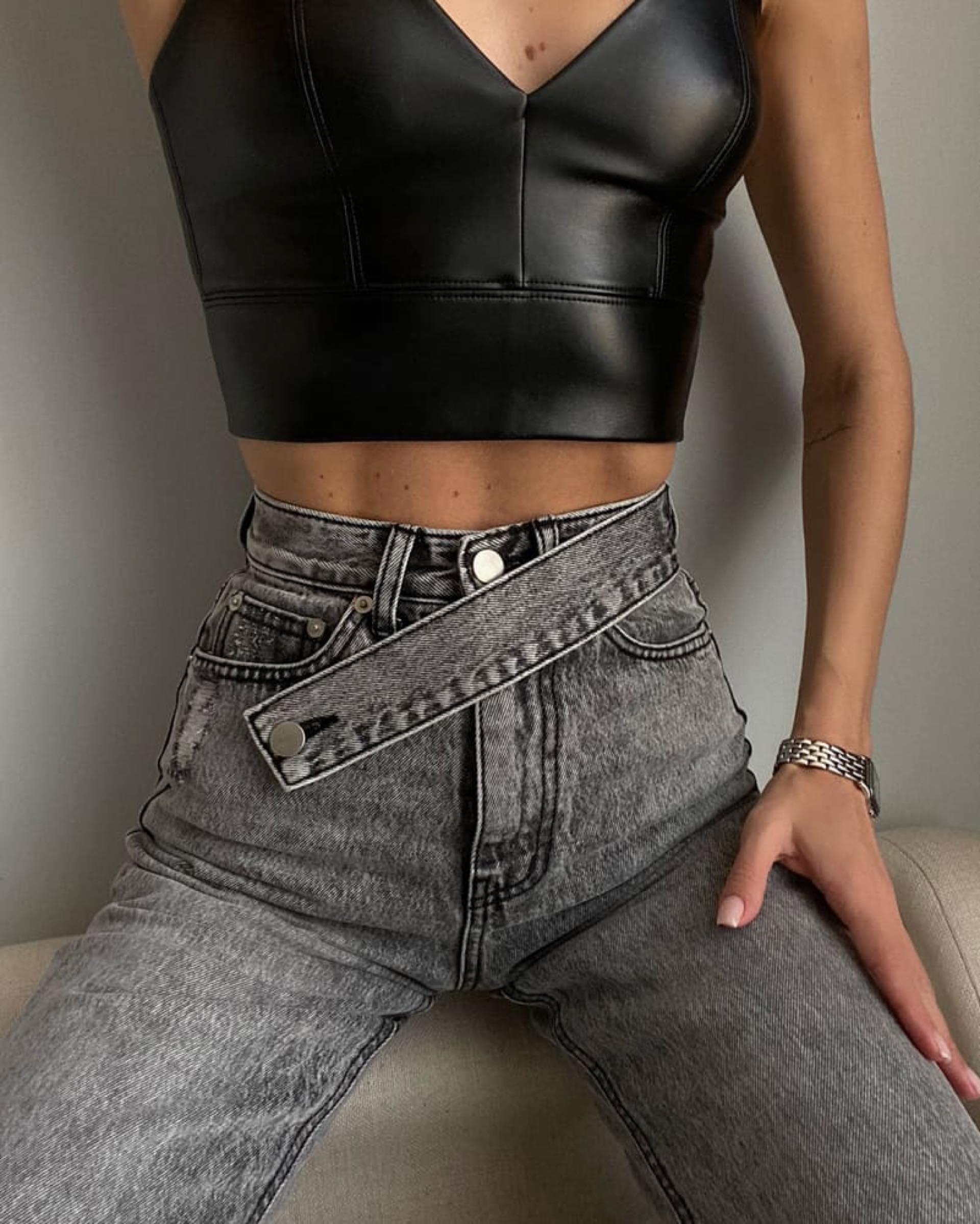 Прямые джинсы с асимметричным поясом
