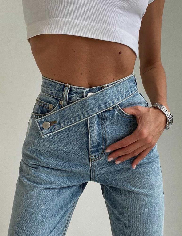Прямые джинсы с асимметричным поясом NEW