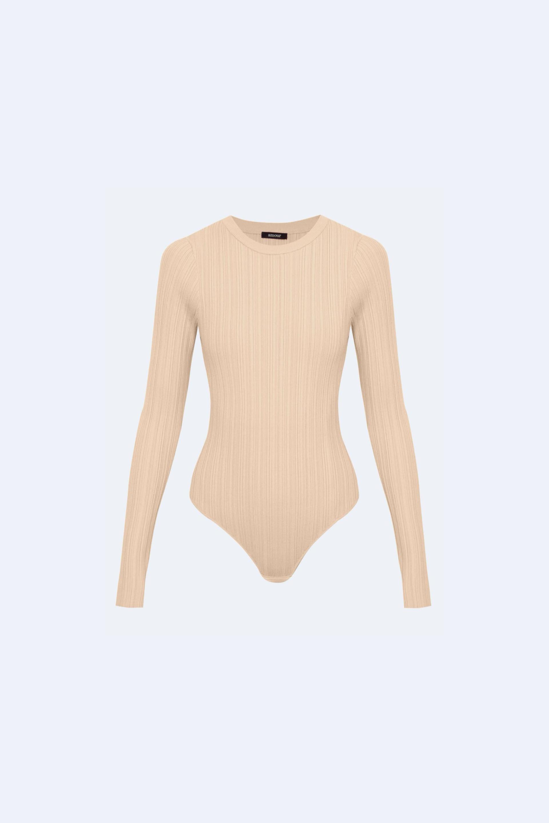 Однотонное стретч-боди с длинным рукавом