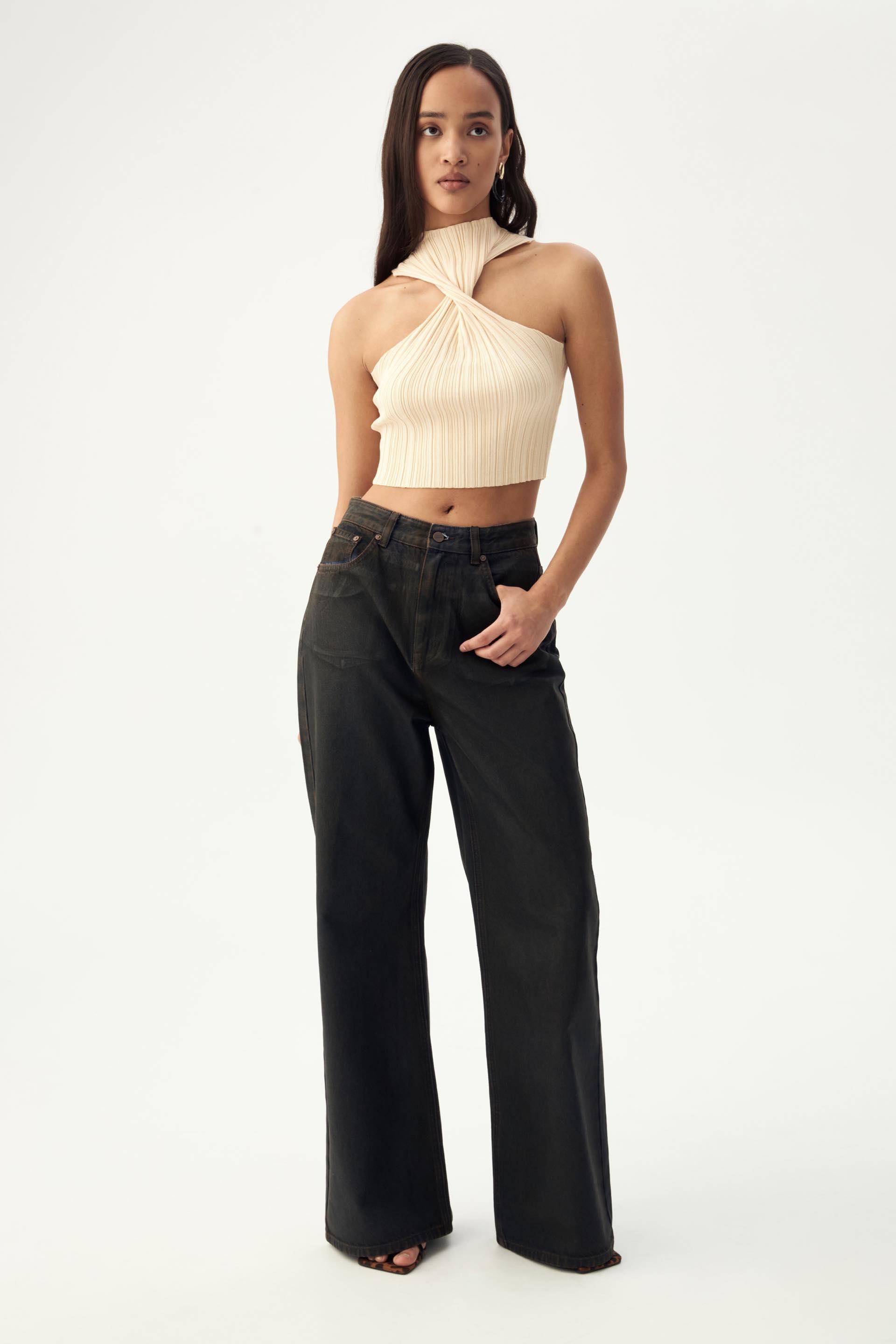 Топ связан оригинальным рисунком. Топ укороченный, с перекрученными бретелями, что создает имитацию узла. Представлен в бежевом и черном варианте.Арт.: AMS3_C415