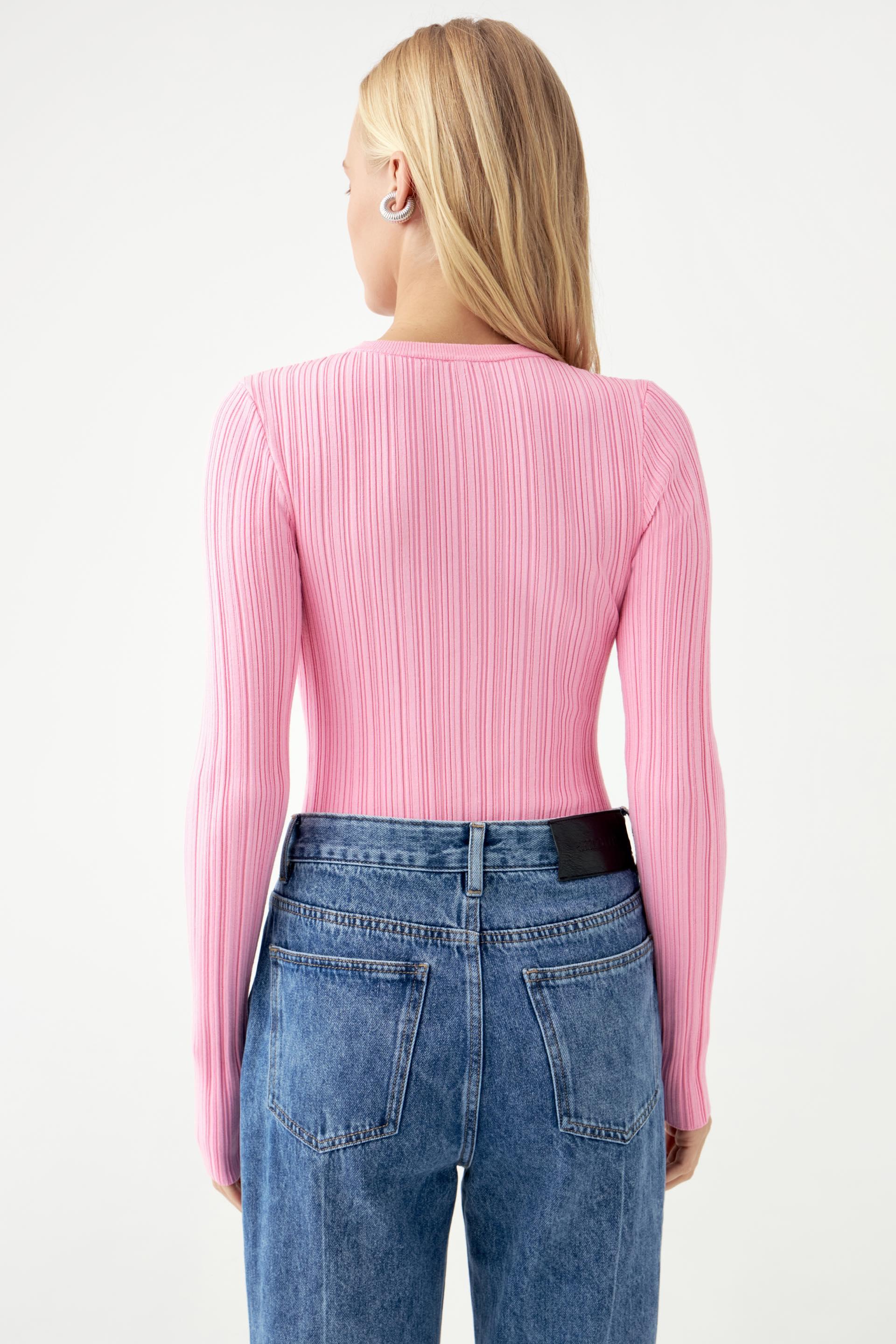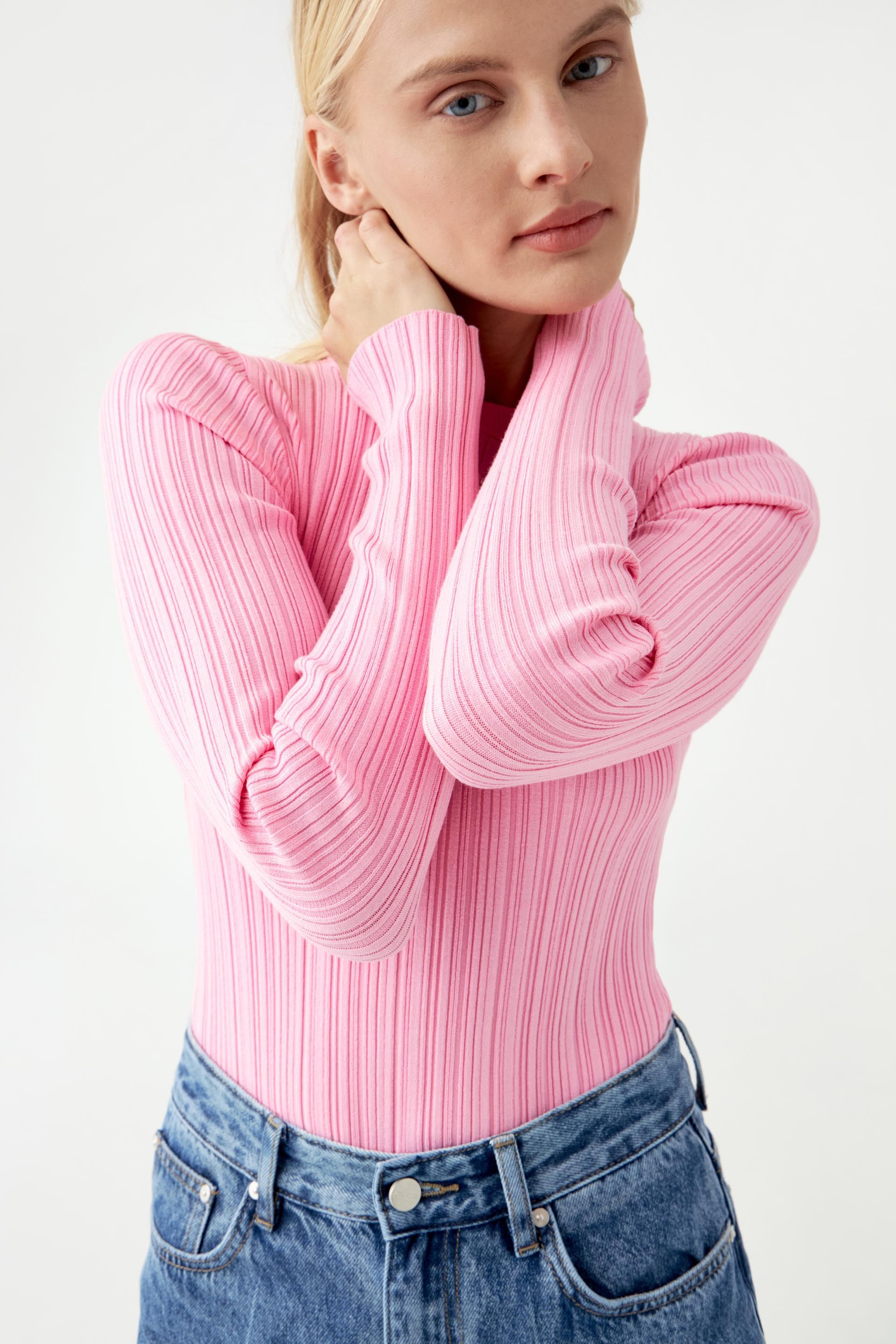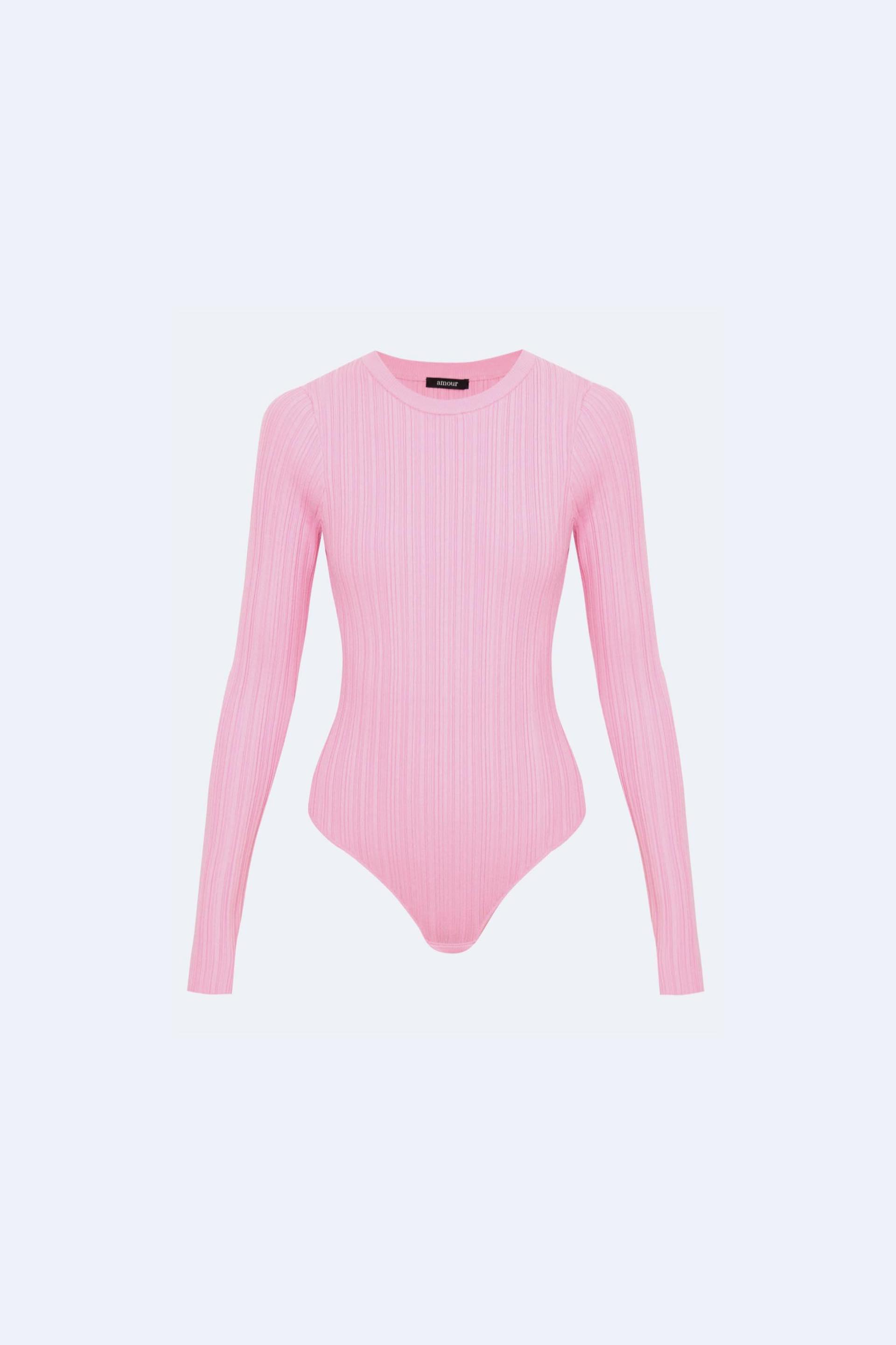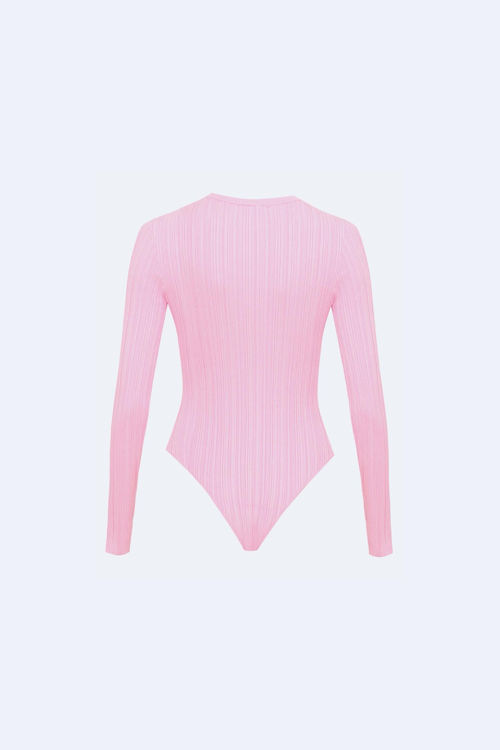 Однотонное стретч-боди с длинным рукавом (розовый)