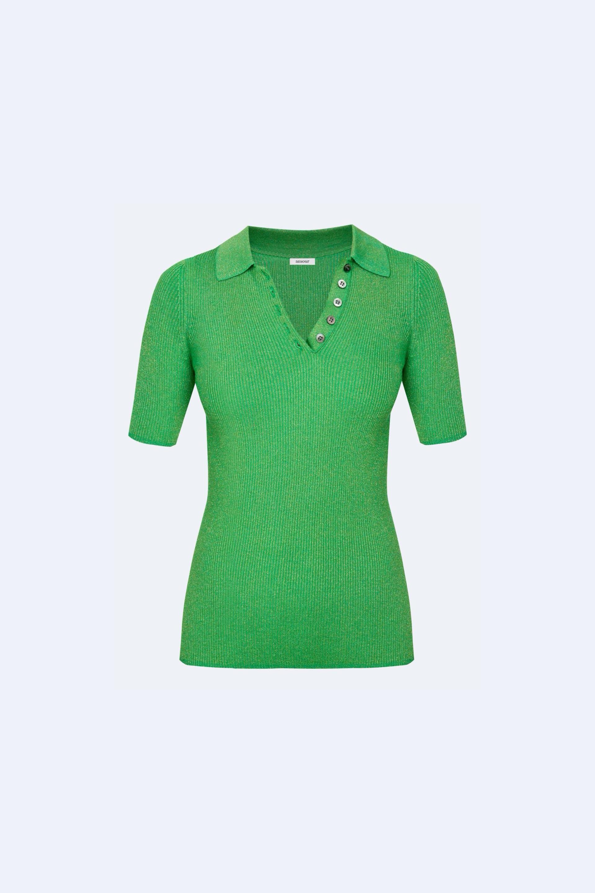 Поло имеет облегающий крой с добавлением люрексовой нити, придающей модели нежный блеск.Арт.: AMS4_C405