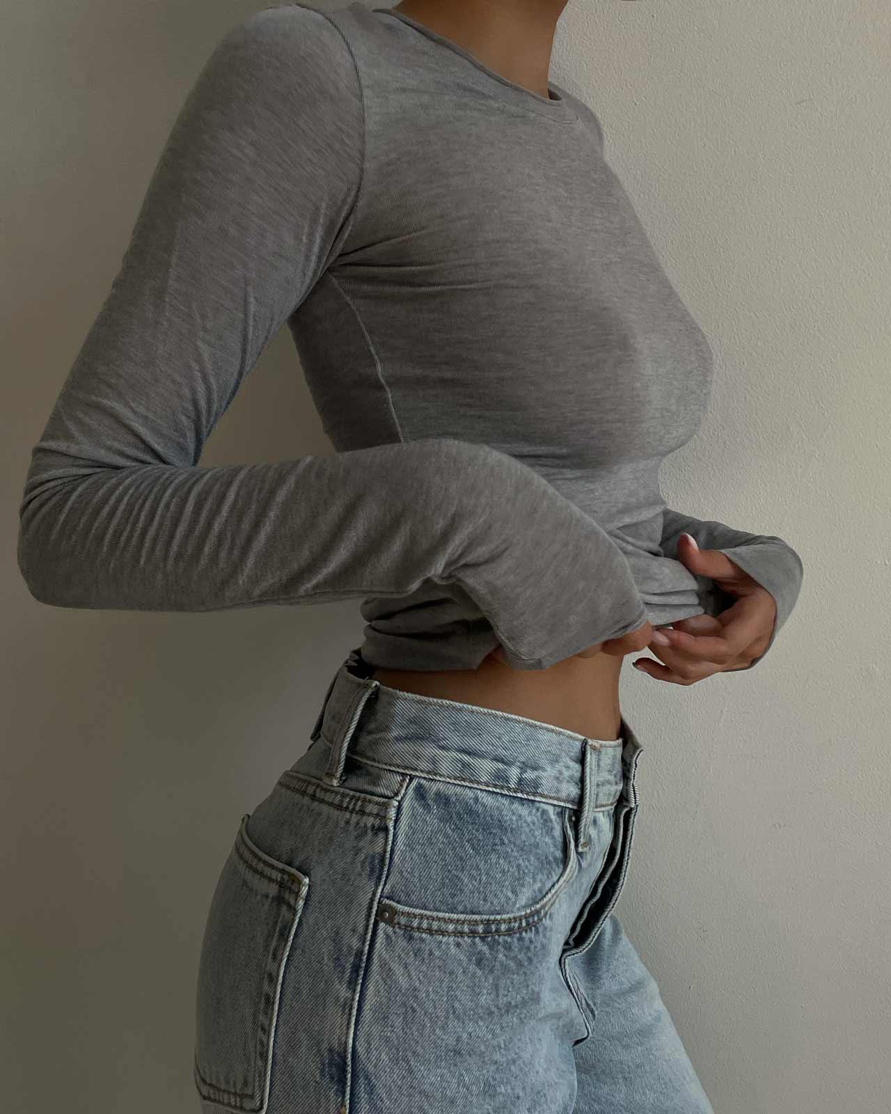 Лонгслив "ластик" с фигурным низом