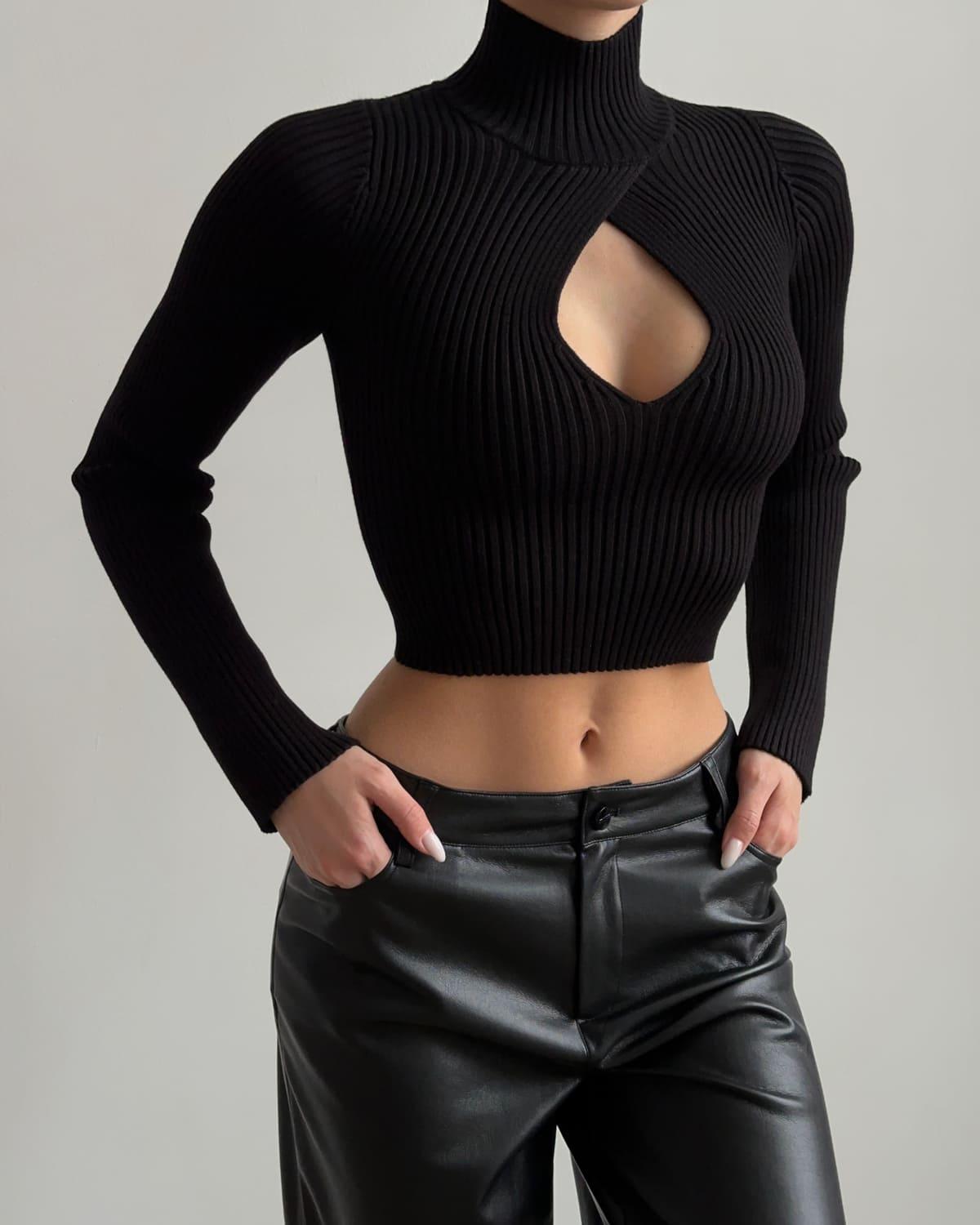 Классическая водолазка с полупрозрачными вставками