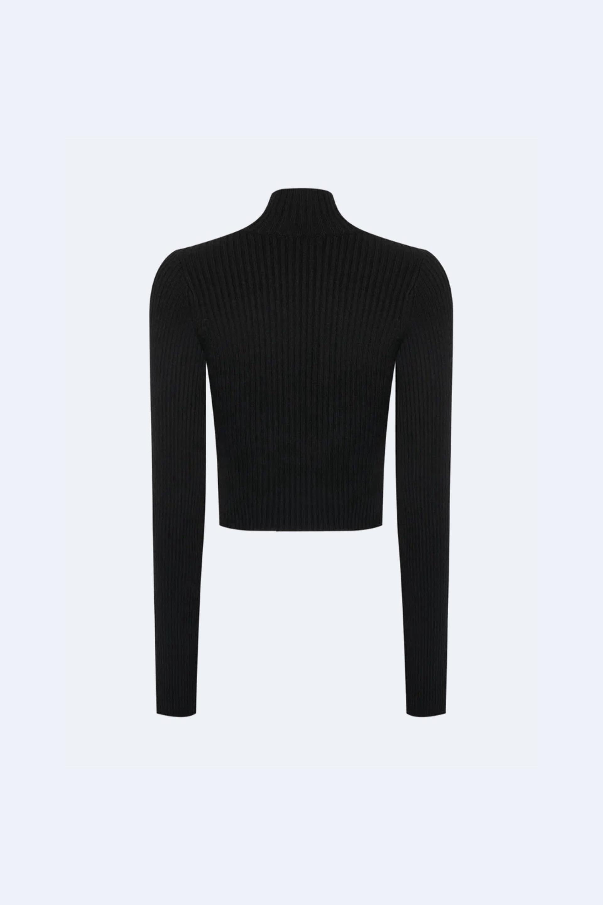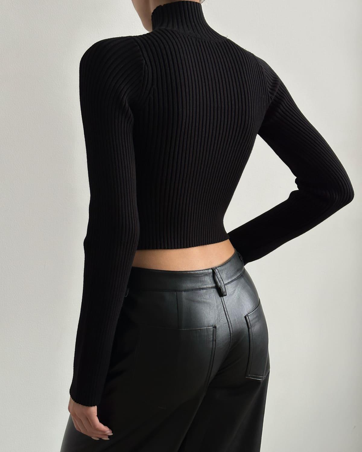 Укороченный лонгслив с длинными рукавами выполнен из мягкой эластичной пряжи. Глубокий вырез подчёркивает зону декольте.Арт.: AMW4_C413