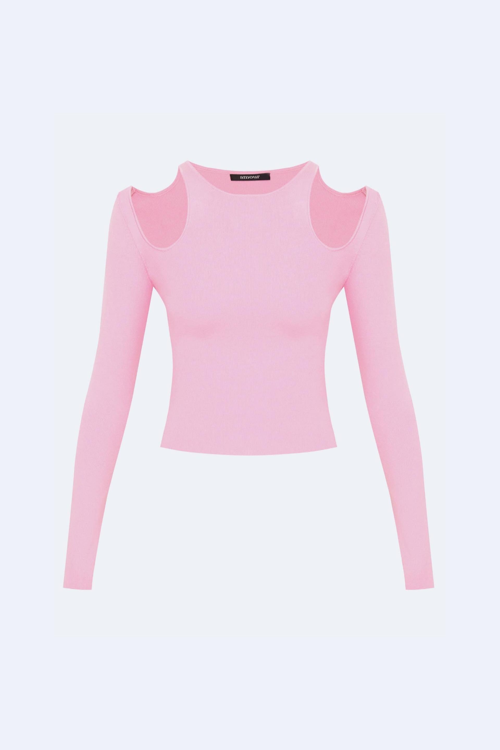 Лонглслив с облегающим кроем и фигурными вырезами на плечах, создающими имитацию майки, надетой с топом.Арт.: AMW3_C408