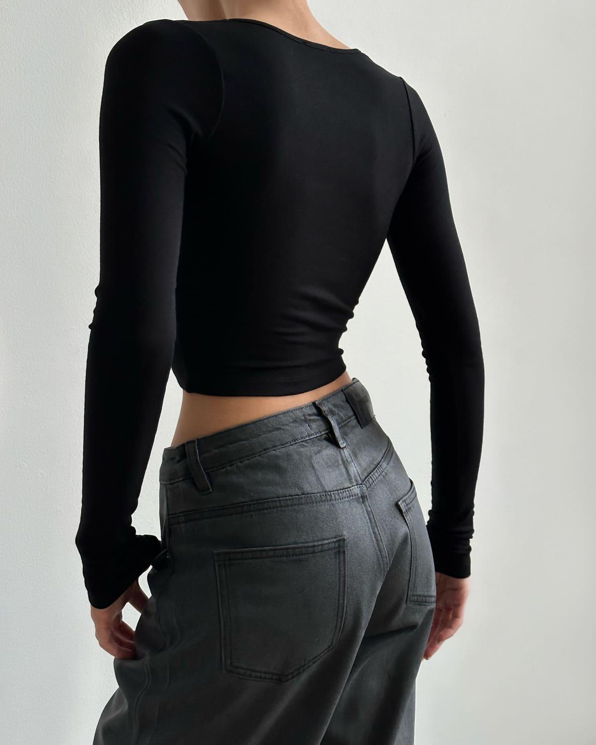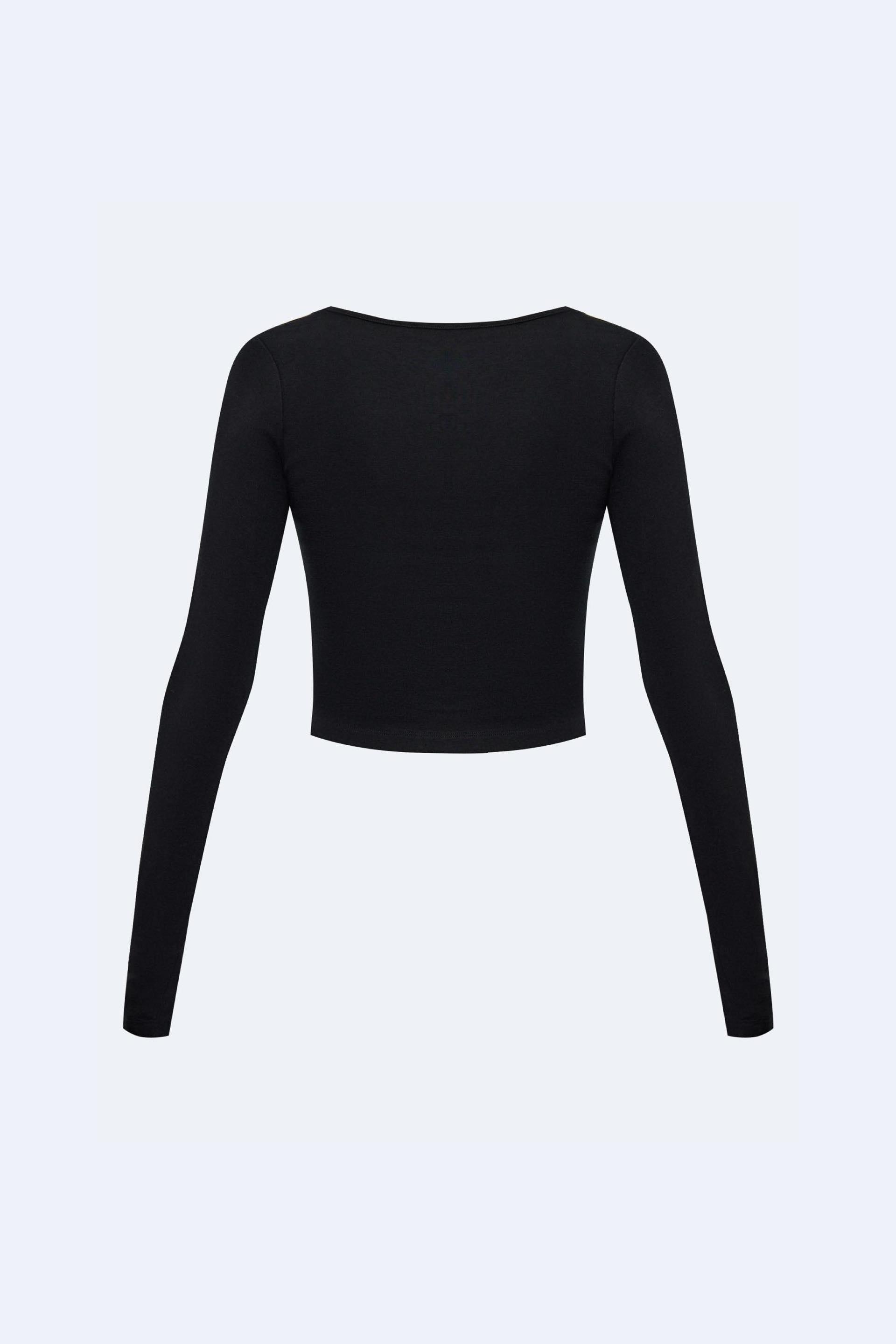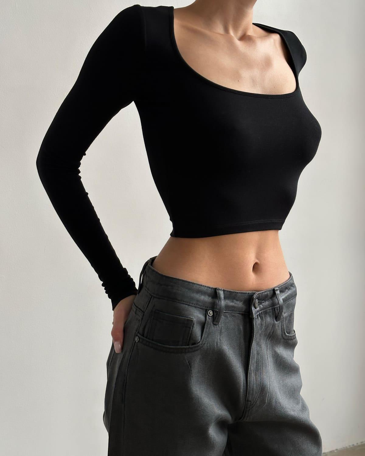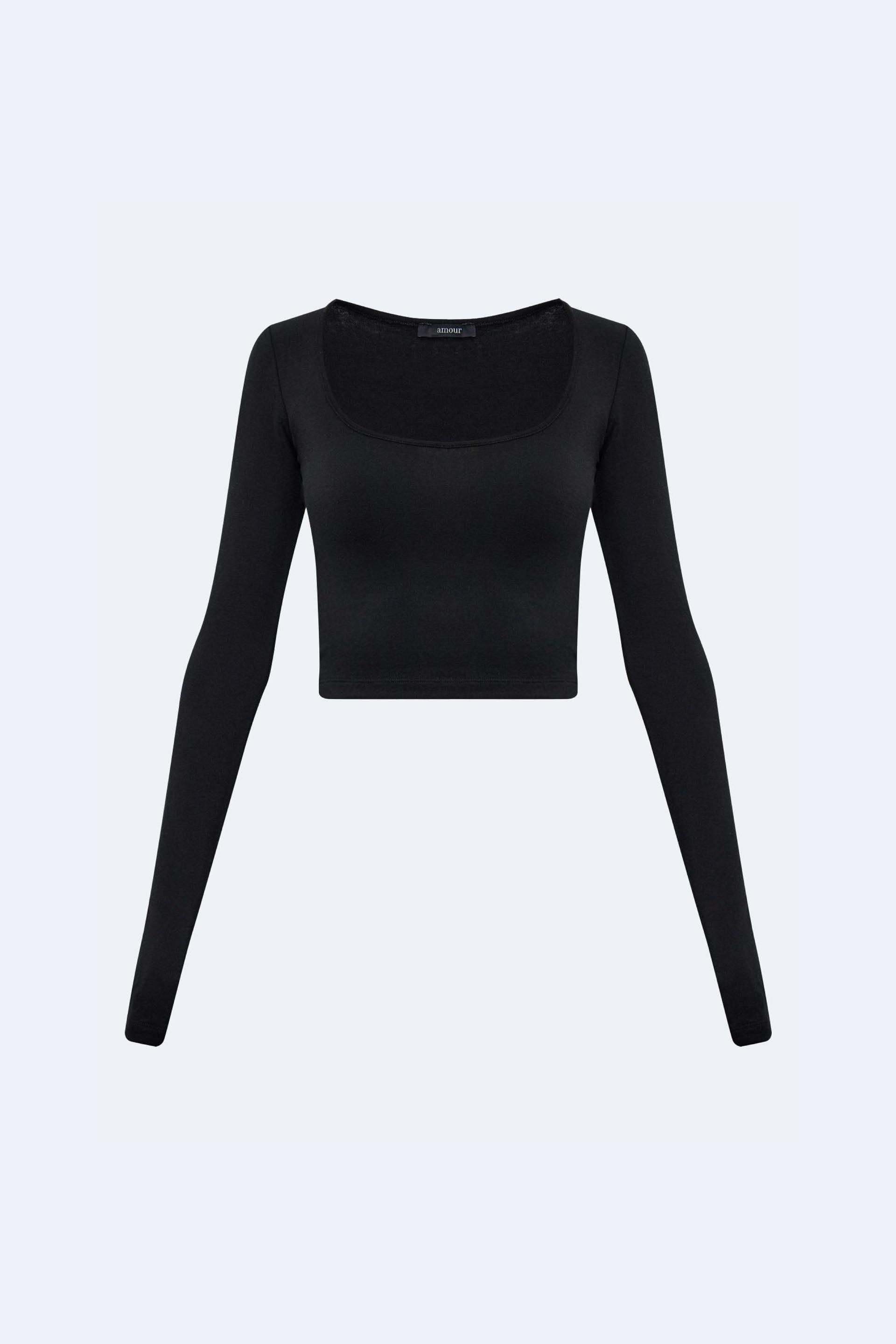 Облегающий топ с длинными рукавами выполнен из тонкого трикотажа с добавлением шерсти. Лонгслив подчеркивает линию декольте благодаря красиво очерченному вырезу.Арт.: AMS4_B404