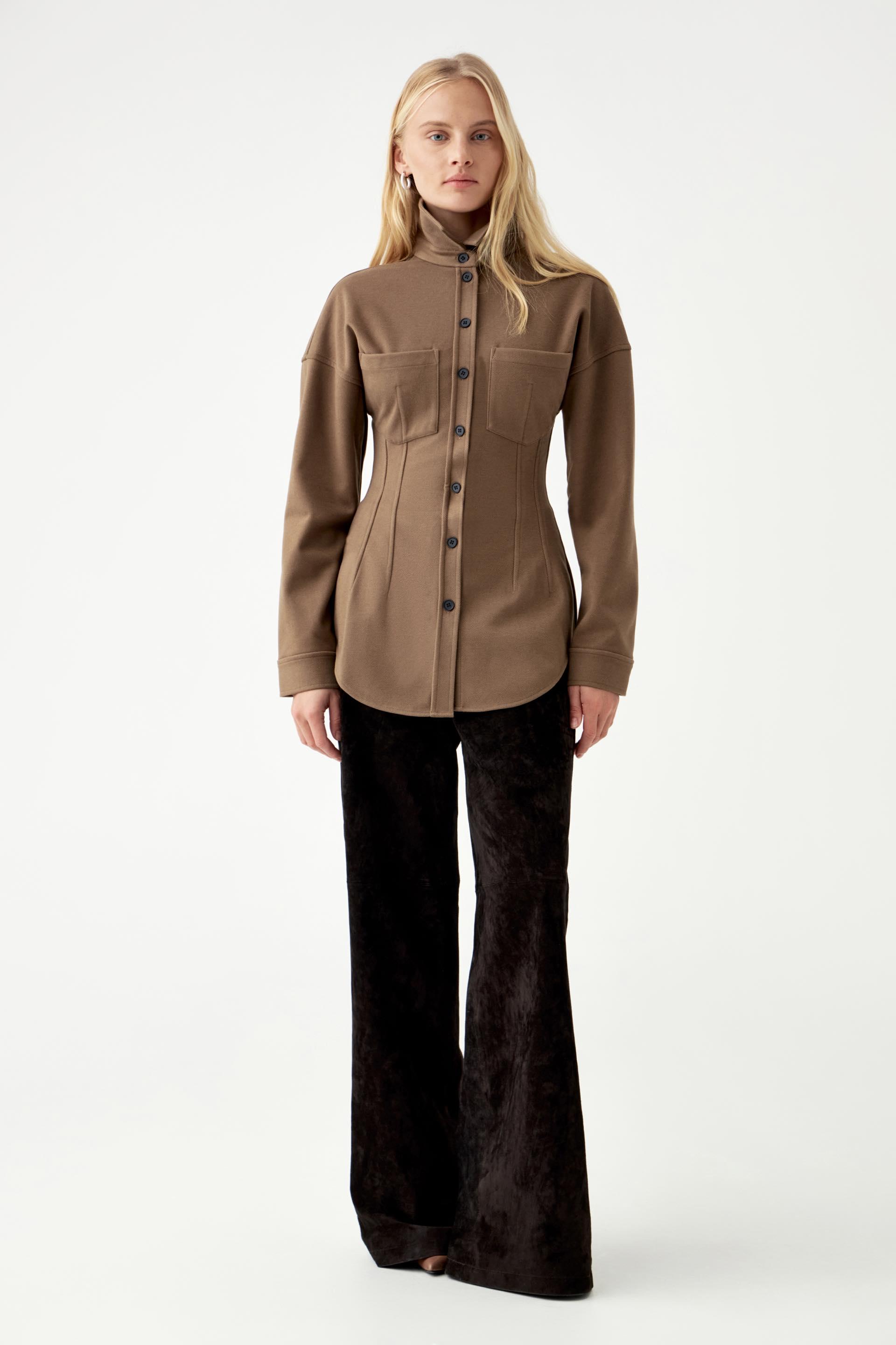 Рубашка с двумя нагрудными карманами приталенного силуэта изготовлена ​​из материала на основе терилена, который хорошо держит форму. Корсетный фасон модели будет уместен как с вещами из классического гардероба, так и с джинсами.Арт.: AMW4_B107