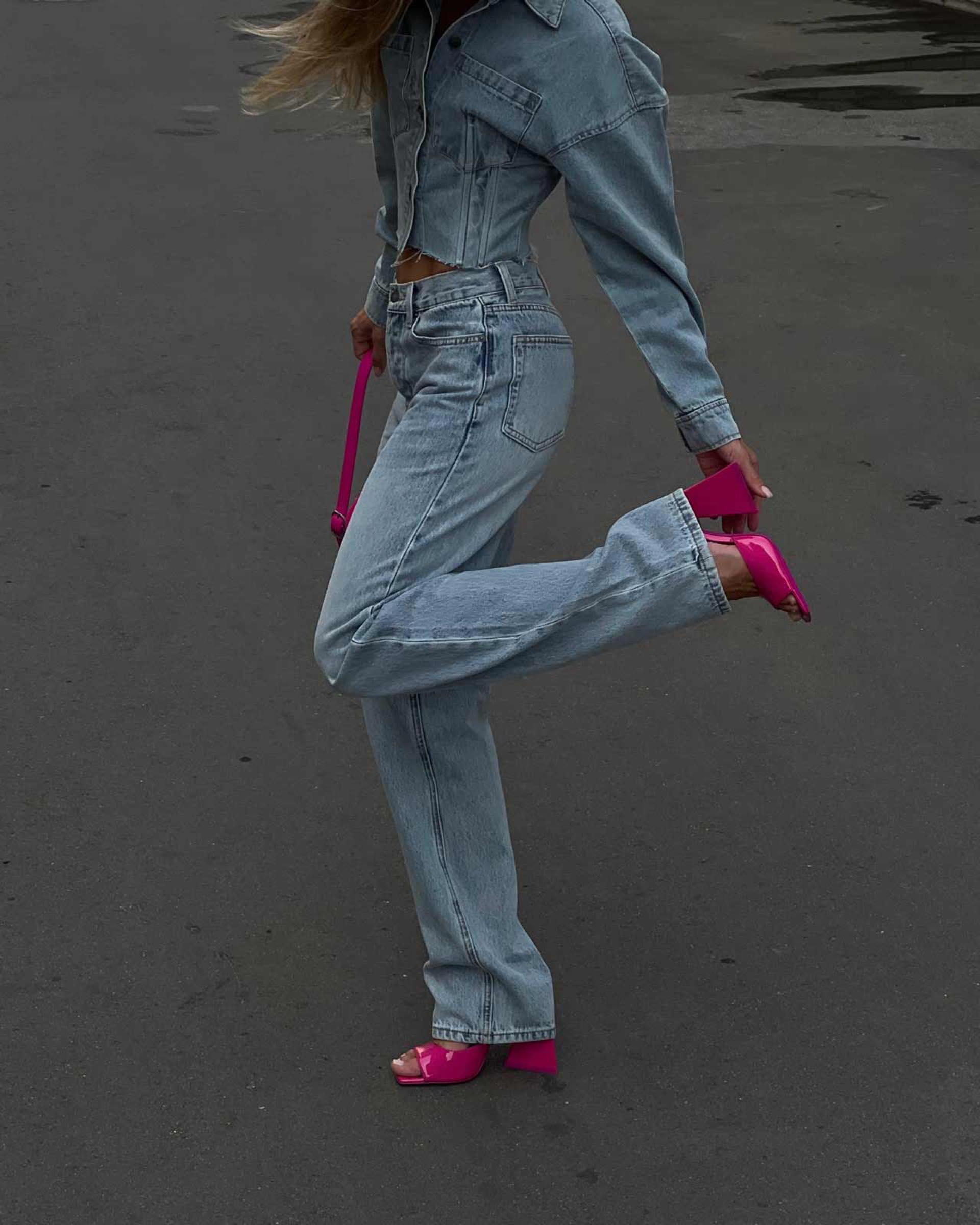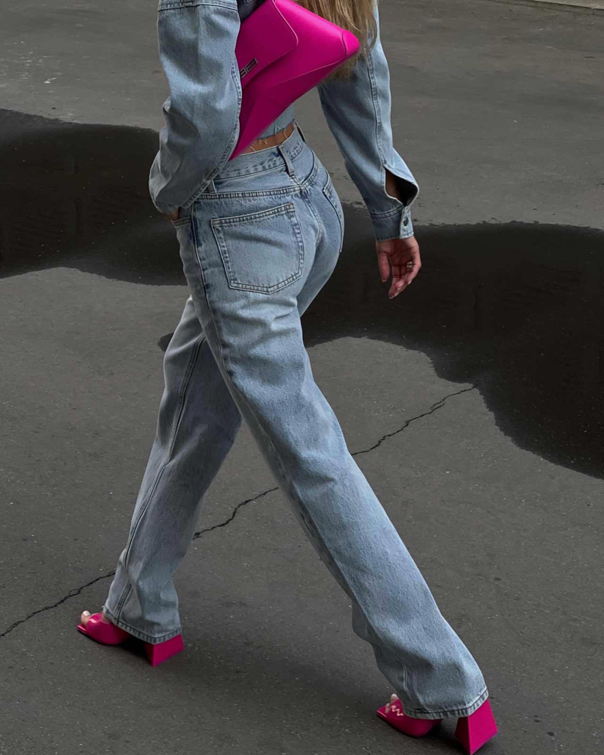 Прямые классические джинсы со средней посадкой с мужской с застежкой в виде болтов вместо молнии.Арт.: AMS2_J621