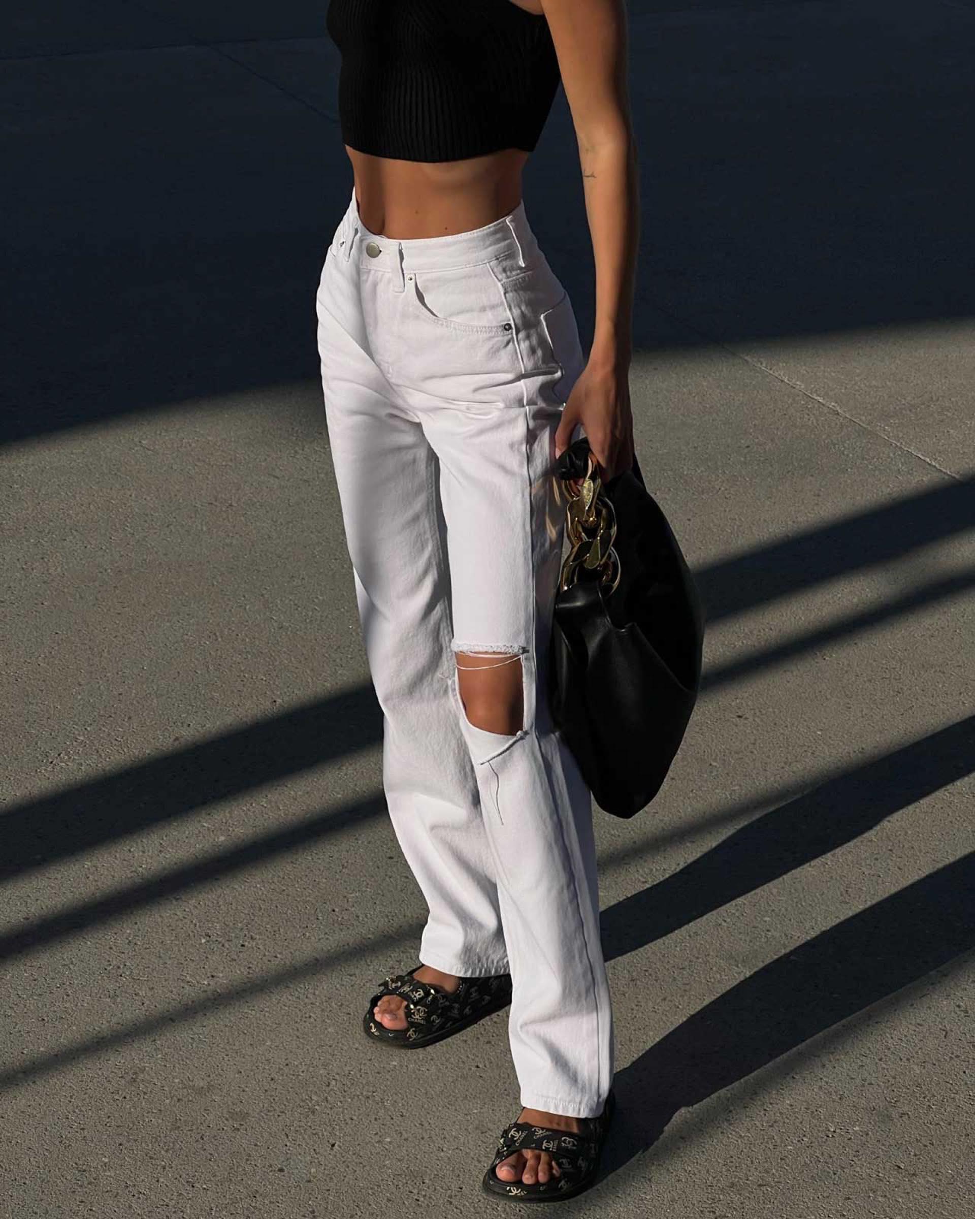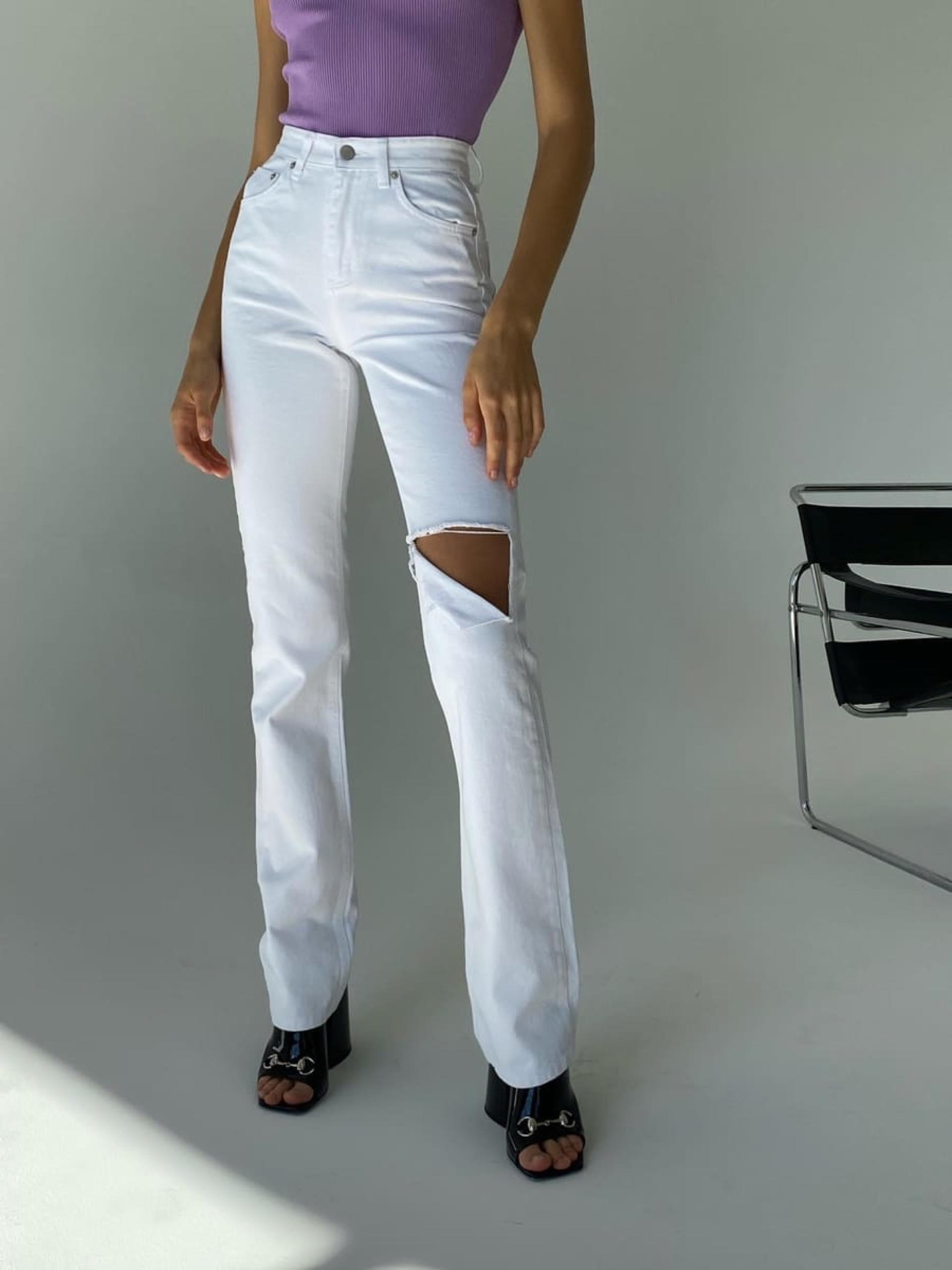 Широкие джинсы с разрезами на коленях