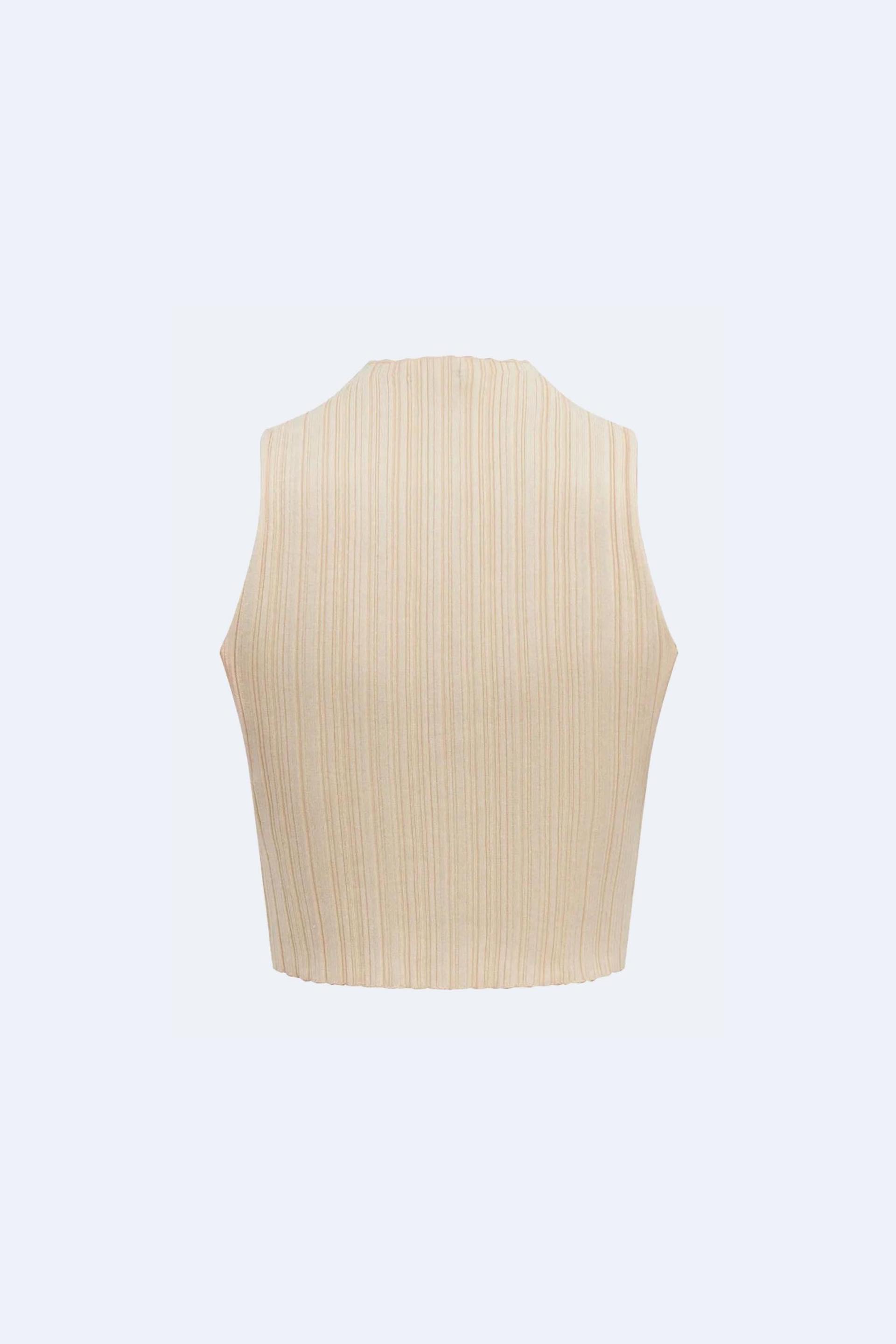 Топ связан оригинальным рисунком. Топ укороченный, с перекрученными бретелями, что создает имитацию узла. Представлен в бежевом и черном варианте.Арт.: AMS3_C415