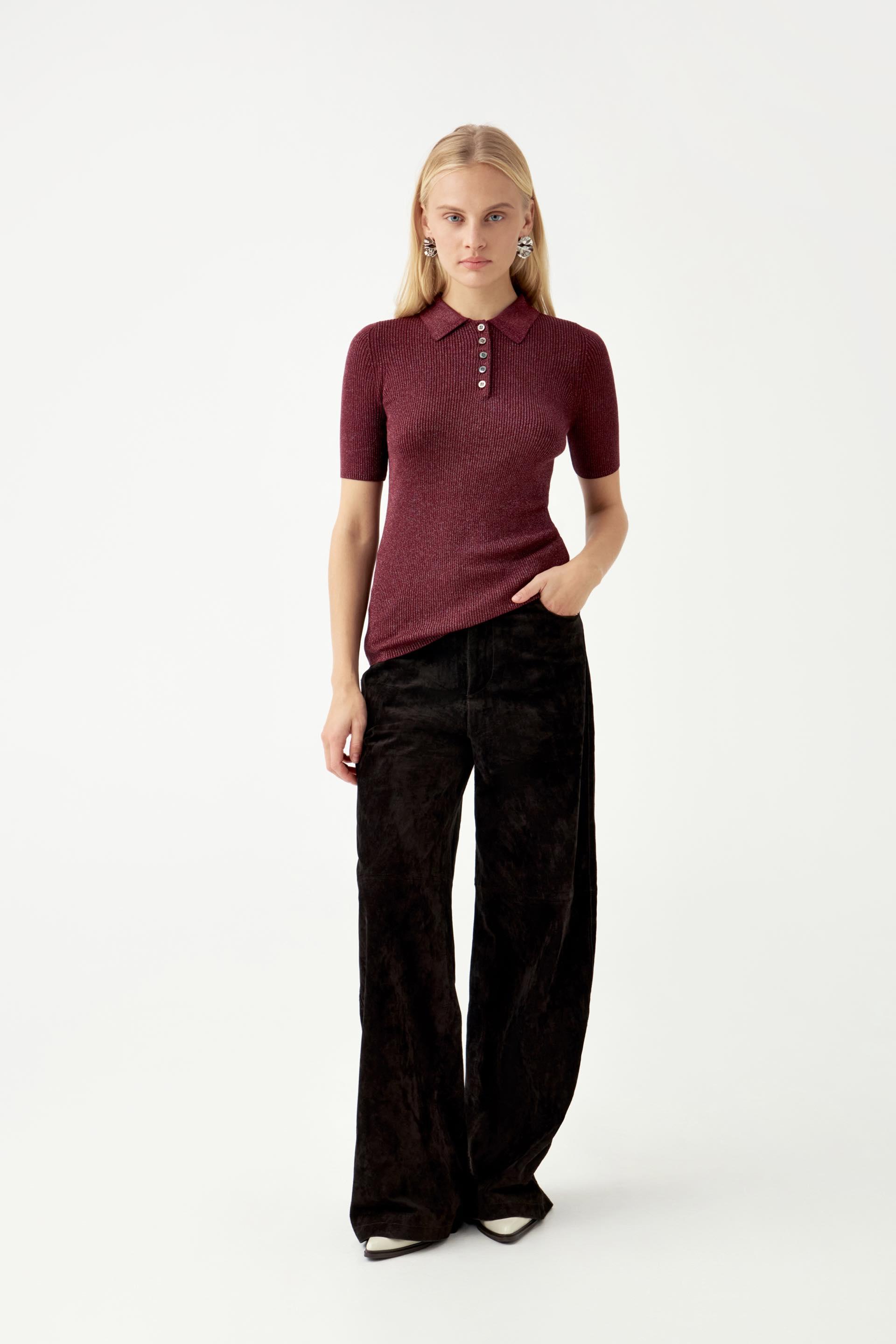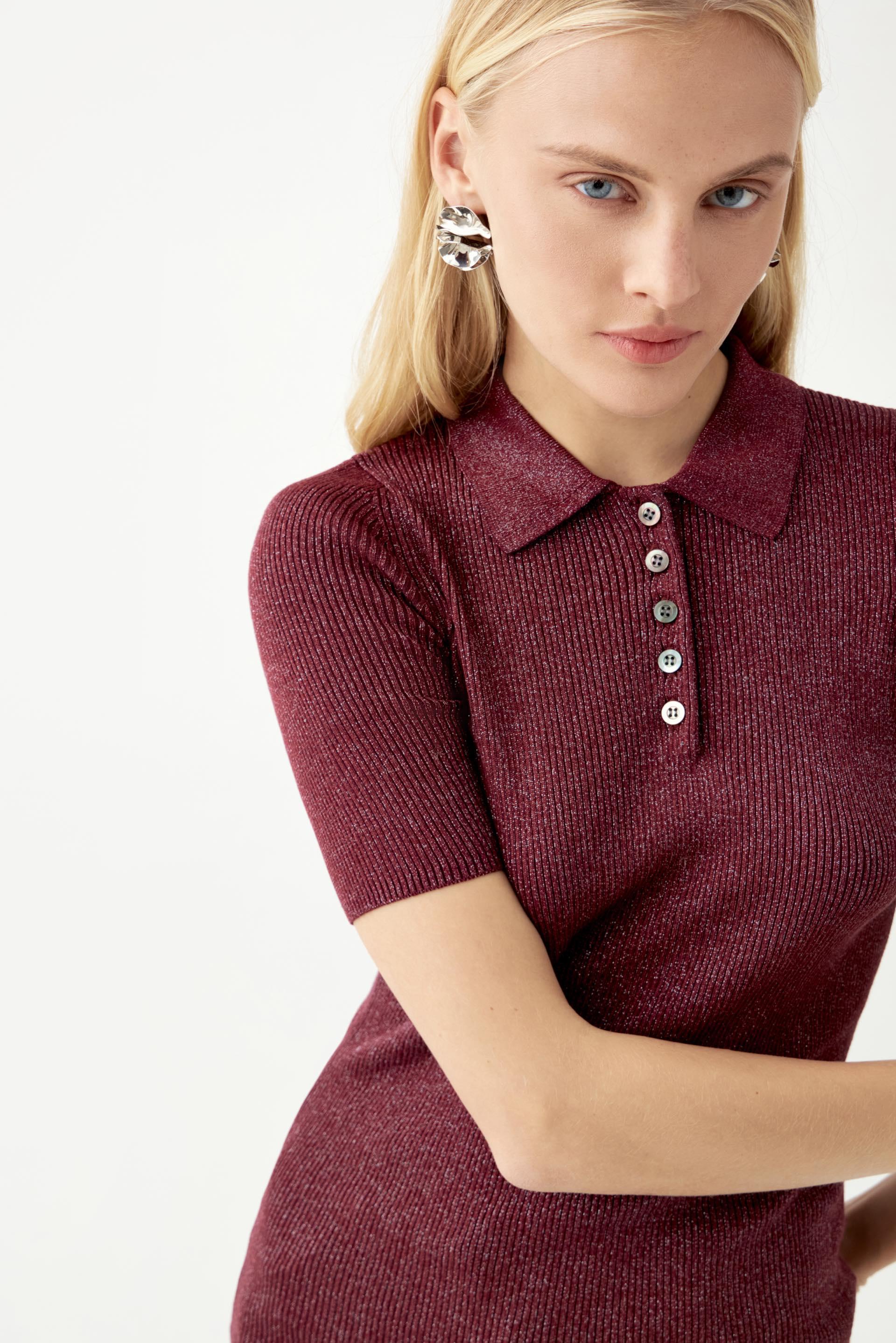 Поло имеет облегающий крой с добавлением люрексовой нити, придающей модели нежный блеск.Арт.: AMS4_C405