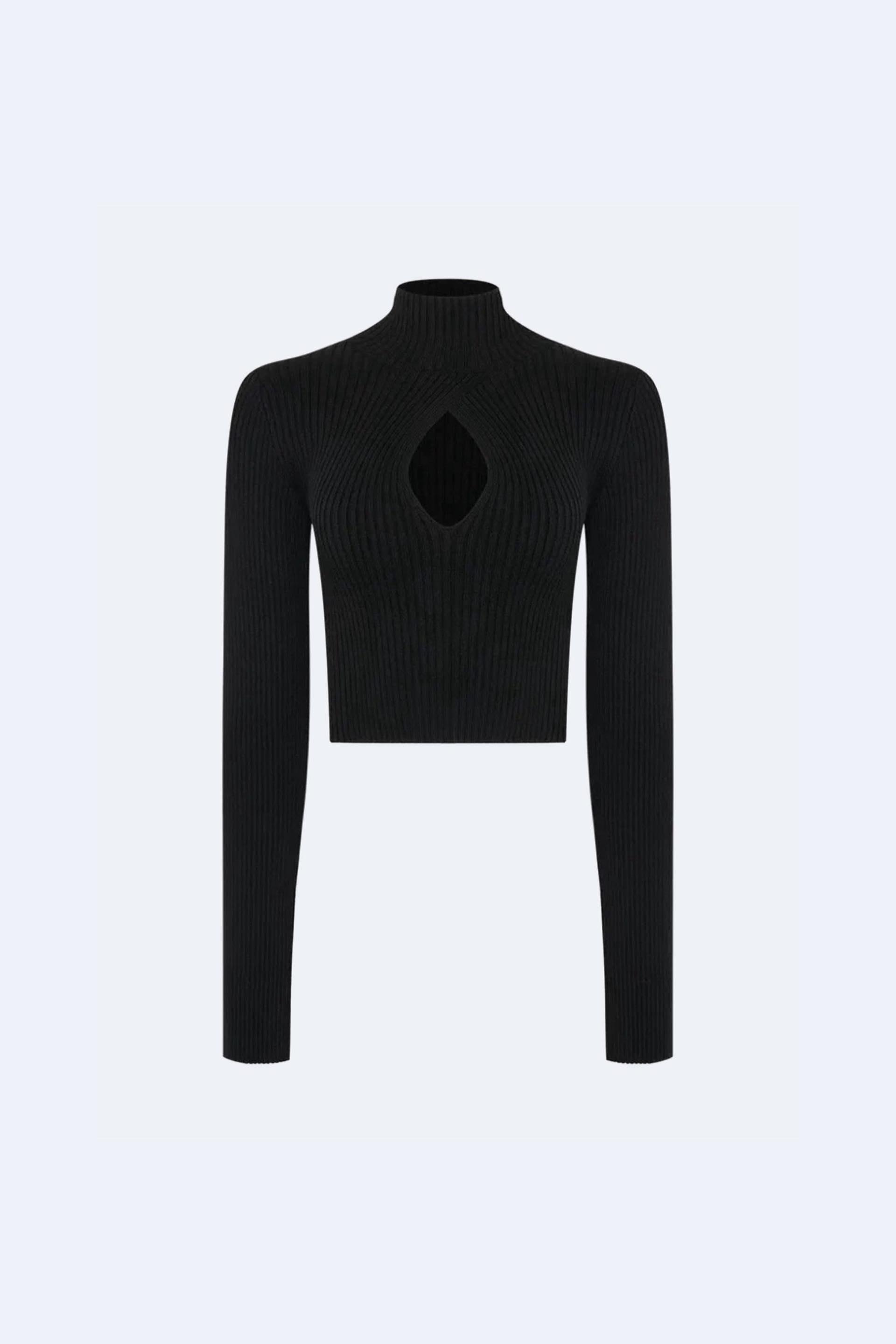 Укороченный лонгслив с длинными рукавами выполнен из мягкой эластичной пряжи. Глубокий вырез подчёркивает зону декольте.Арт.: AMW4_C413