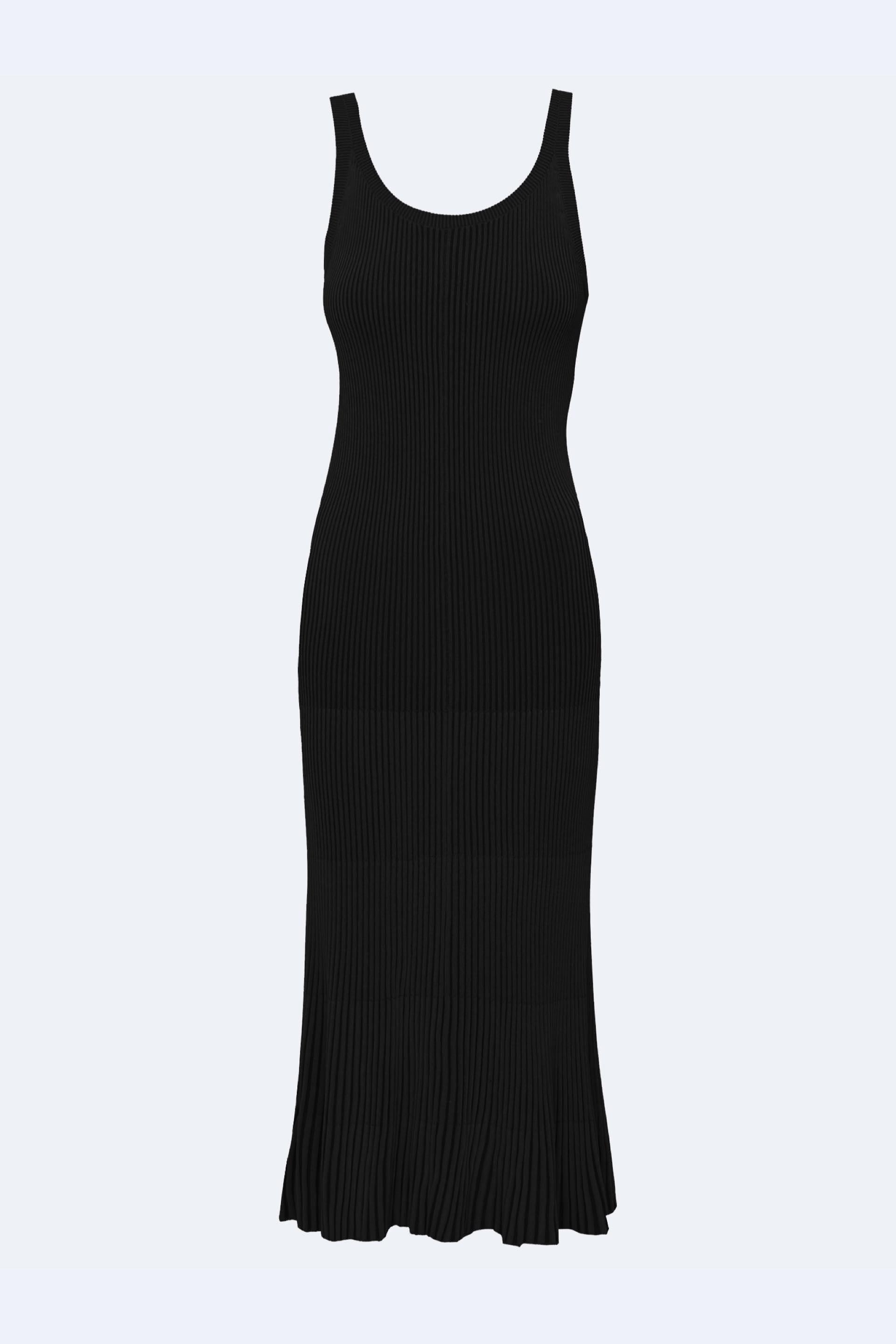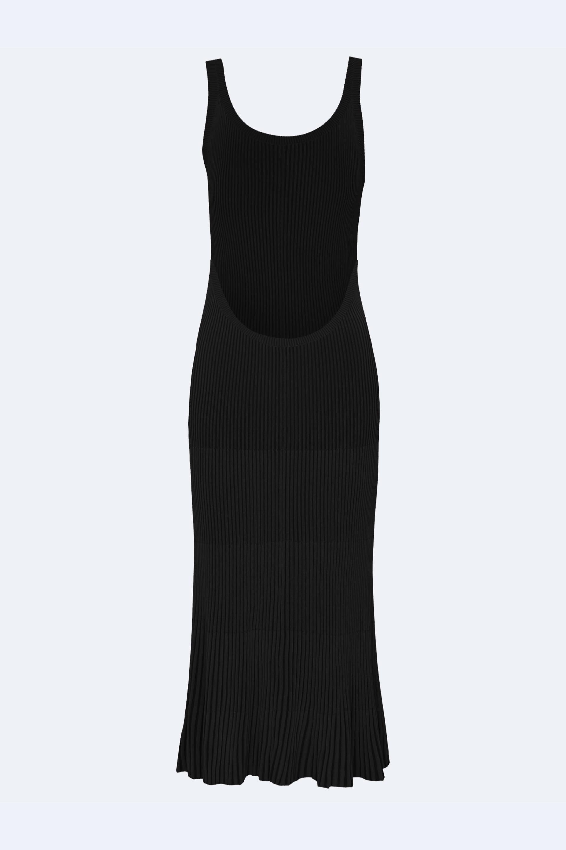 Черное миди-платье без рукавов лишено излишнего декора: акцент модели сделан на силуэт. Эффектно открытая спина лишает платье чрезмерной строгости и превращает в превосходный вариант для вечернего выхода. В течение дня вы можете носить платье в сочетанииАрт.: AMS4_C304
